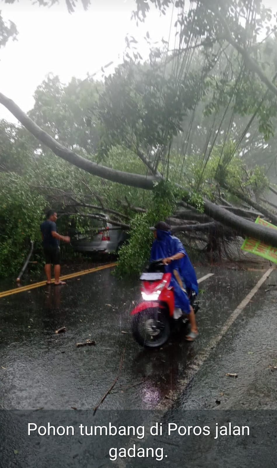 Malang, http://gajayanatvnews.comAkibat hujan deras yang disertai angin kencang  yang mengguyur Kota Malang, pada Minggu siang  (2/11/2025) mengakibatkan beberapa Pohon Tumbang. Salah satunya di Jalan Raya Gadang Kota Malang dan menimpa sebuah mobil yang sedang melintas sekitar pukul 14.15 WIB.