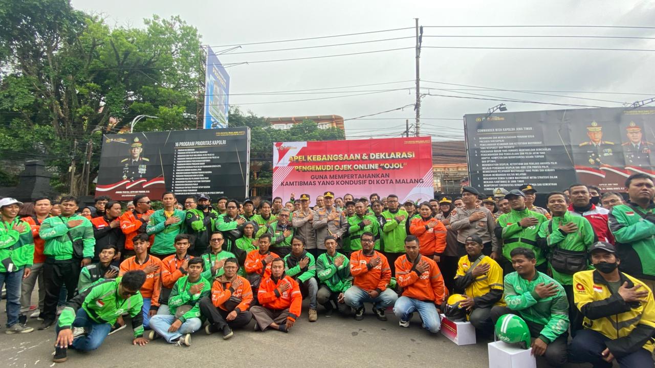 Malang, http://gajayanatvnews.com – Sebagai bentuk kebersamaan dan komitmen menjaga keamanan di Kota Malang, Polresta Malang Kota menggelar Apel Kebangsaan dan Deklarasi Ojek Online Serentak se-Indonesia, pada Kamis (24/10/2025). Kegiatan yang berlangsung di halaman Polresta Malang ini menjadi ajang silaturahmi antara aparat kepolisian dan komunitas ojek online yang setiap hari berinteraksi langsung dengan masyarakat.