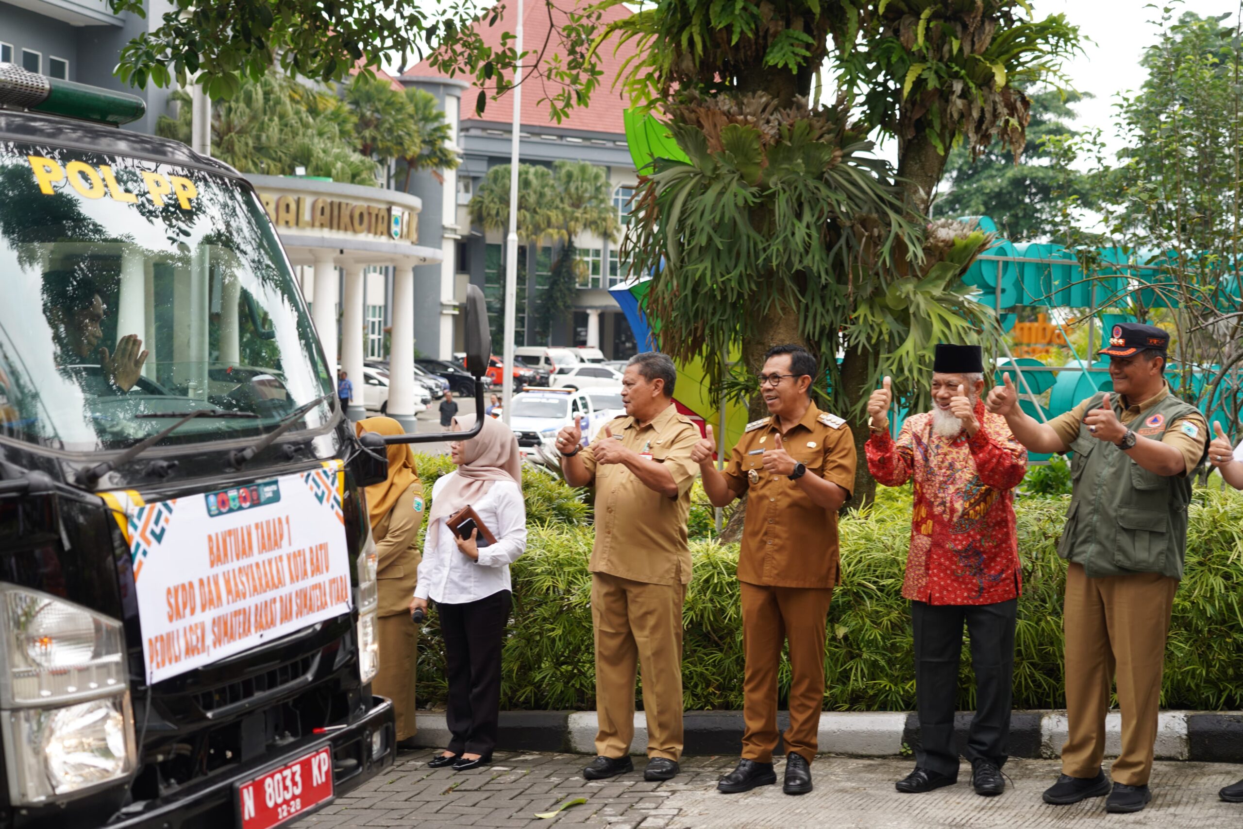 Batu, http://gajayanatvnews.com – Wali Kota Batu, Nurochman, melepas keberangkatan bantuan kemanusiaan tahap pertama hasil solidaritas Pemerintah, Forkopimda, dan masyarakat Kota Batu berupa lima armada logistik dengan nilai sebesar Rp570 juta untuk membantu korban banjir dan longsor di sejumlah wilayah di Pulau Sumatera, mencakup Provinsi Aceh, Sumatera Barat, dan Sumatera Utara, bertempat di Balai Kota Among Tani, Kota Batu, Selasa (9/12/2025).